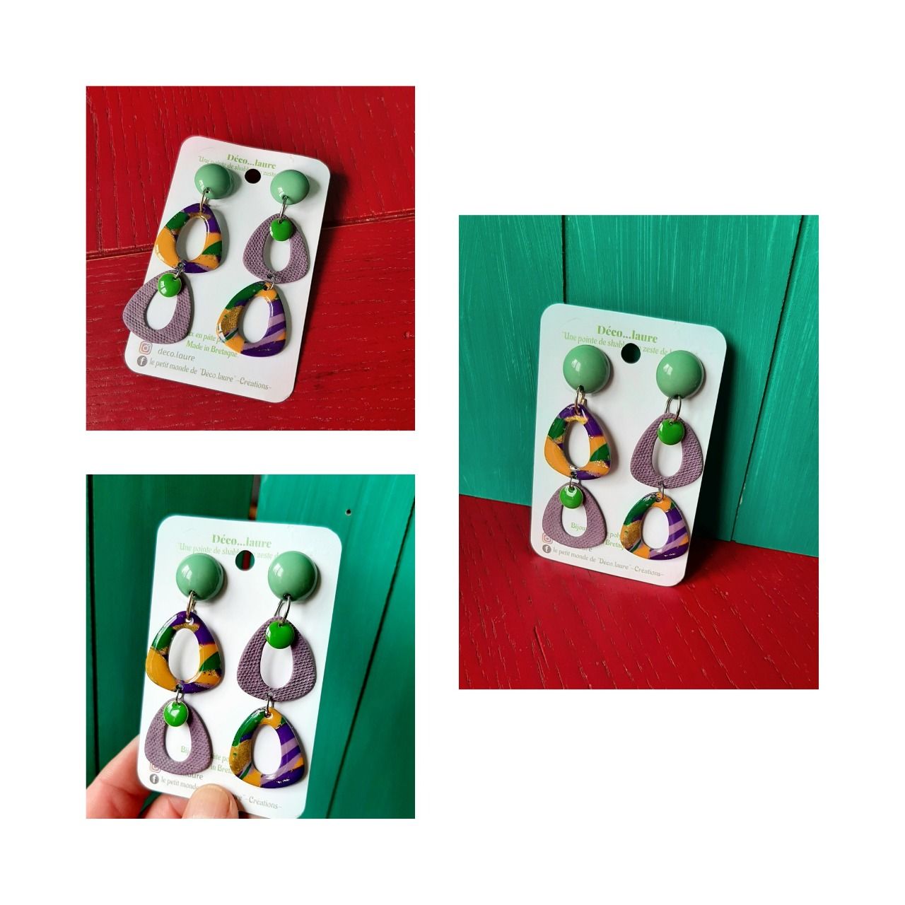 Boucles d'oreilles en argile polymère,créations uniques faites main.