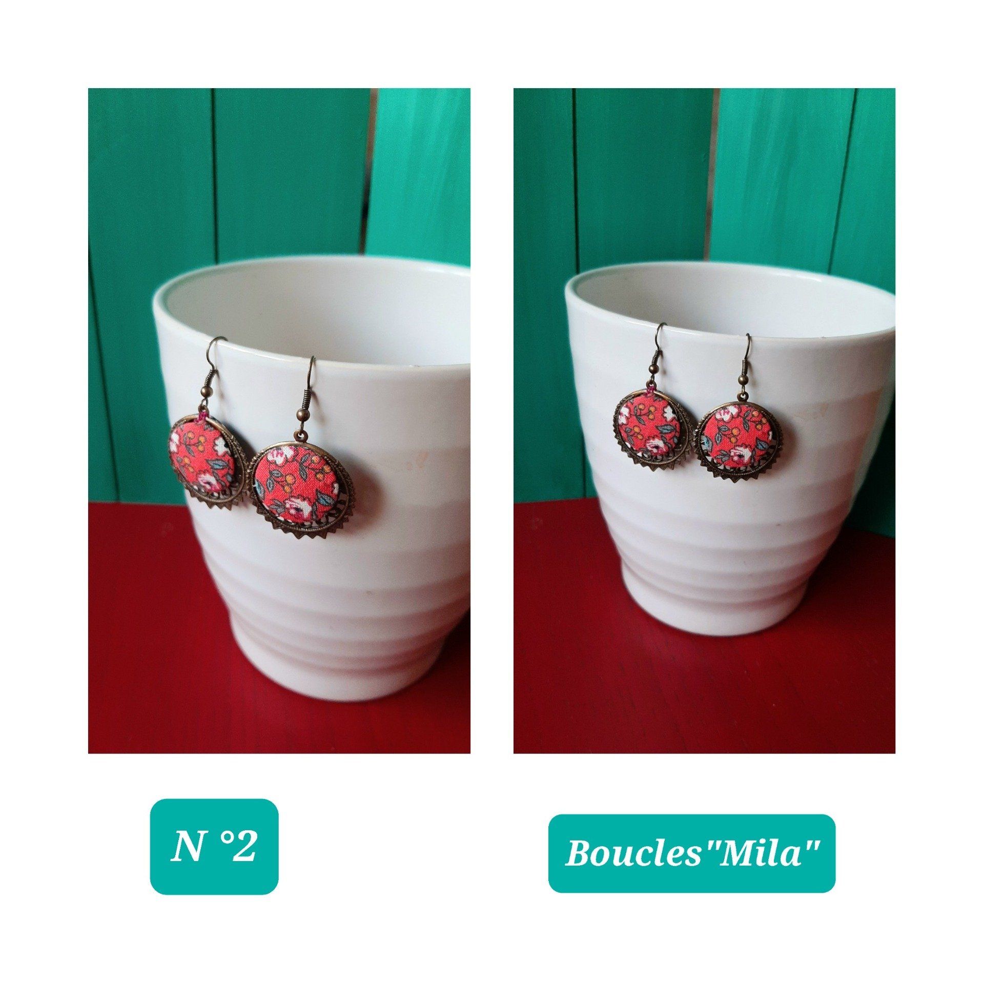 Les boucles d'oreilles sont confectionnées avec des chutes de tissu .